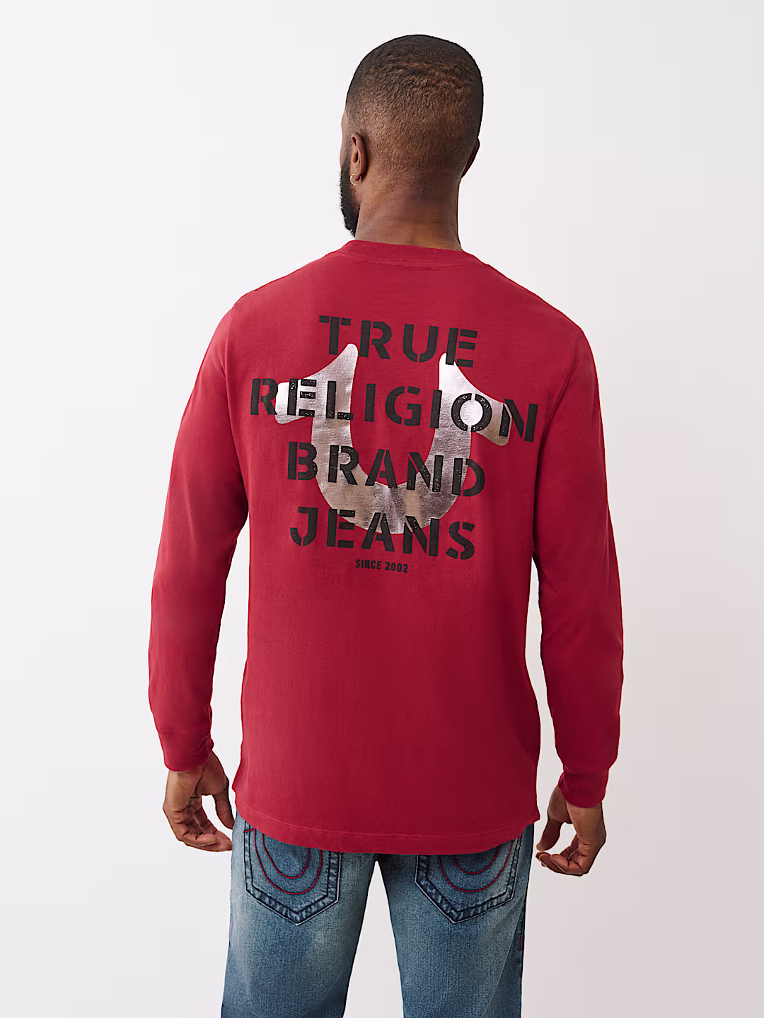 تيشيرت رجالي ترو ريليجن كم طويل بطباعة خلفية