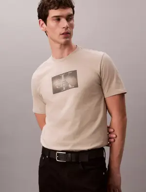 Men’s T-shirt from Calvin Klein in a stylish beige color, featuring a modern CK logo on the front. Made from premium cotton fabric that offers softness and all-day comfort, perfect for casual and smart-casual looks.