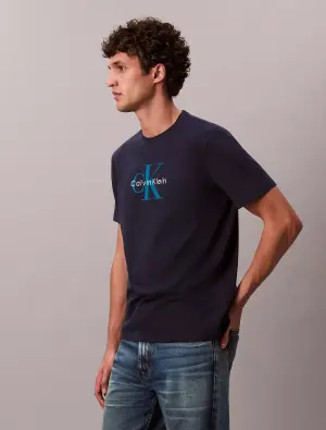 Men’s Calvin Klein navy T-shirt featuring a clean and modern design with the iconic CK logo printed on the front.