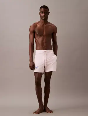 Calvin Klein men’s rose swim shorts designed with a clean and timeless look for effortless summer style. Crafted from lightweight, quick-drying fabric, these shorts offer superior comfort whether you’re swimming or relaxing by the beach or pool. Finished with an elastic waistband and adjustable drawstring for a secure, comfortable fit.