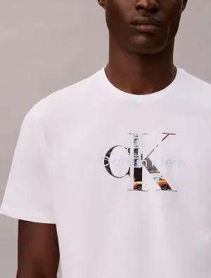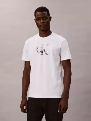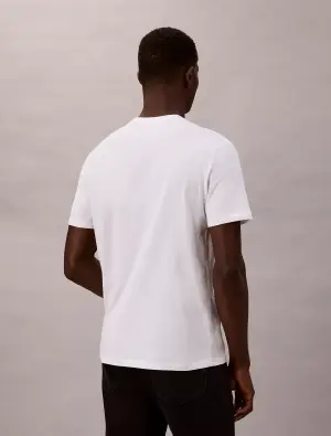 Men’s Calvin Klein white T-shirt featuring the iconic CK logo on the chest for a clean and modern look.