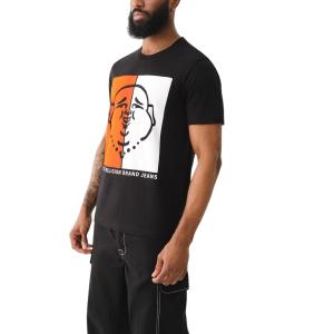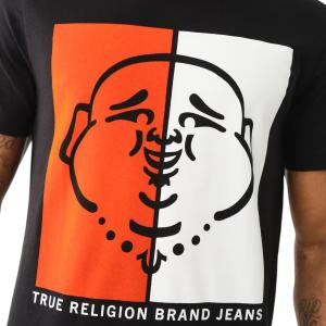 Make a bold statement with this authentic True Religion black T-shirt featuring an iconic Buddha graphic in a striking dual-color design (orange and white). Crafted from 100% premium cotton for soft, breathable all-day comfort, with a Regular Fit ideal for everyday casual wear.