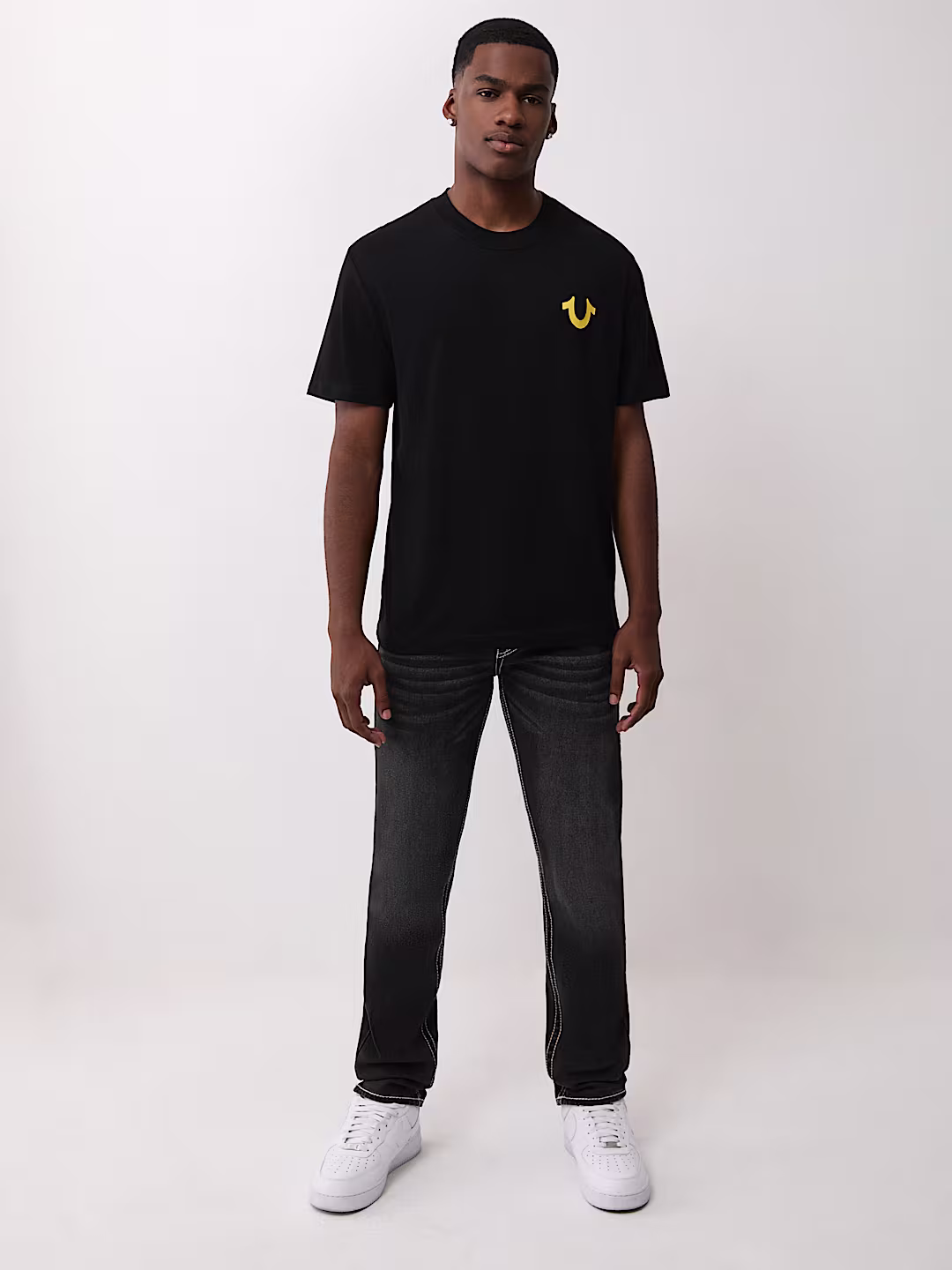 Complete your everyday style with this authentic True Religion black T-shirt.