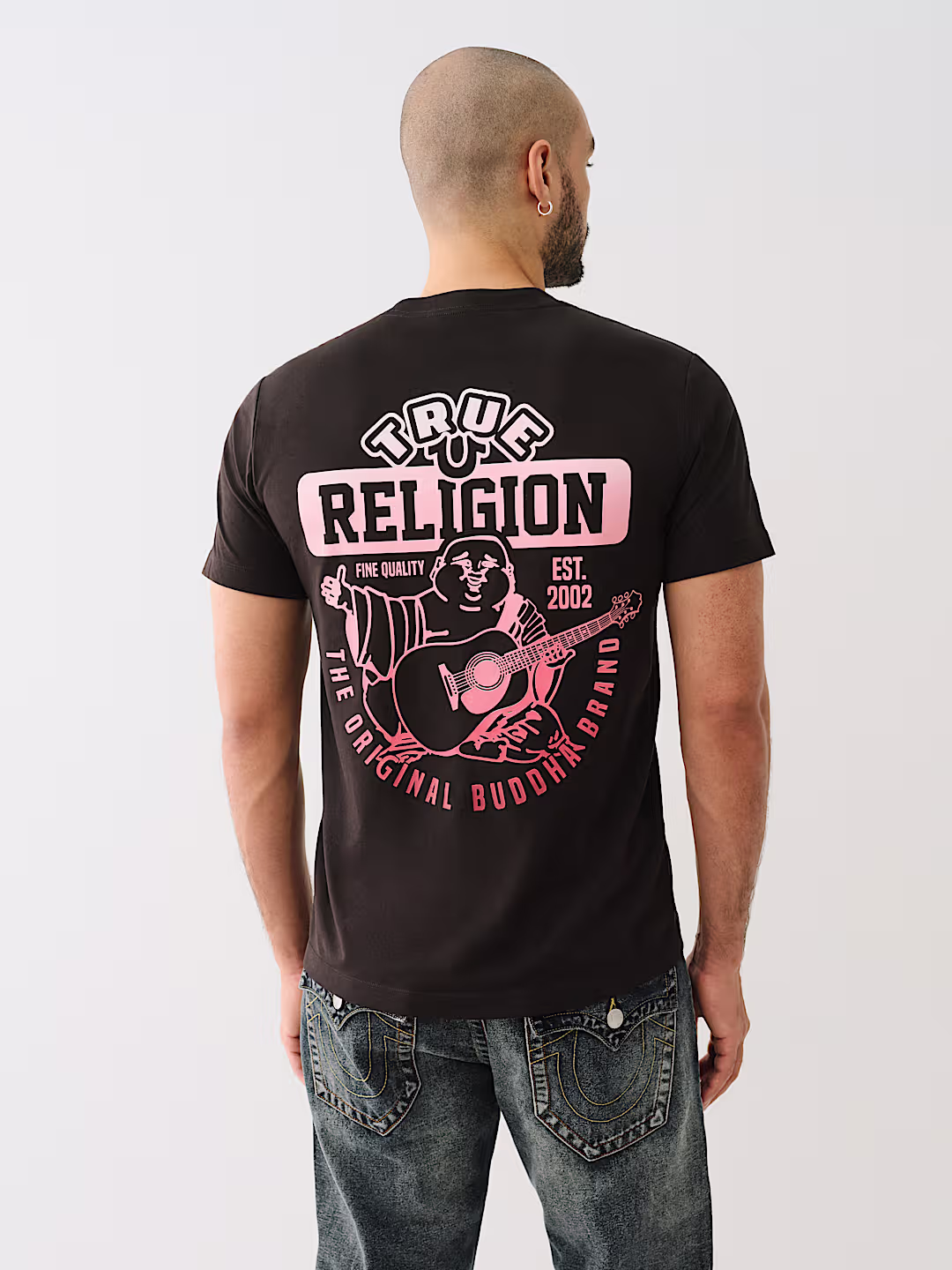 omplete your everyday style with this authentic True Religion black T-shirt. Crafted from premium cotton