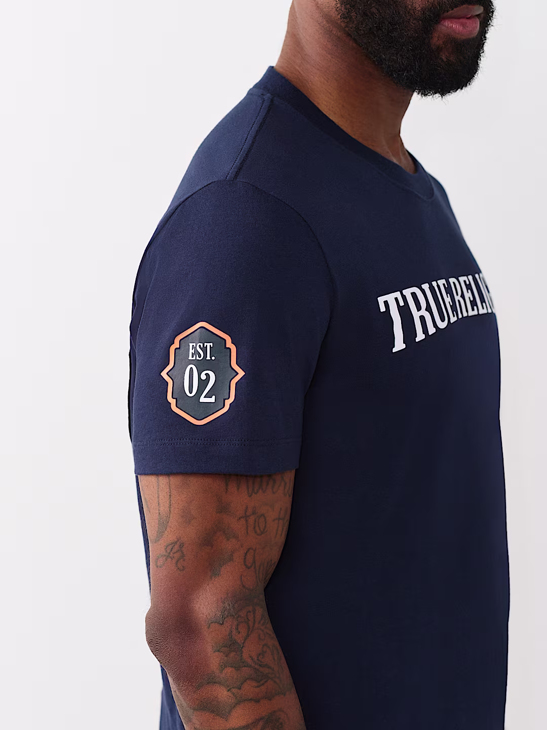Men’s True Religion T-shirt featuring a bold graphic back print that reflects the brand’s iconic street style.